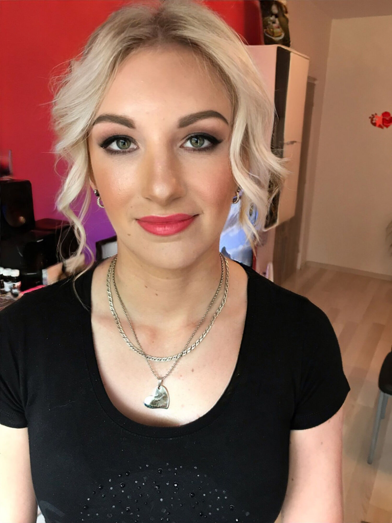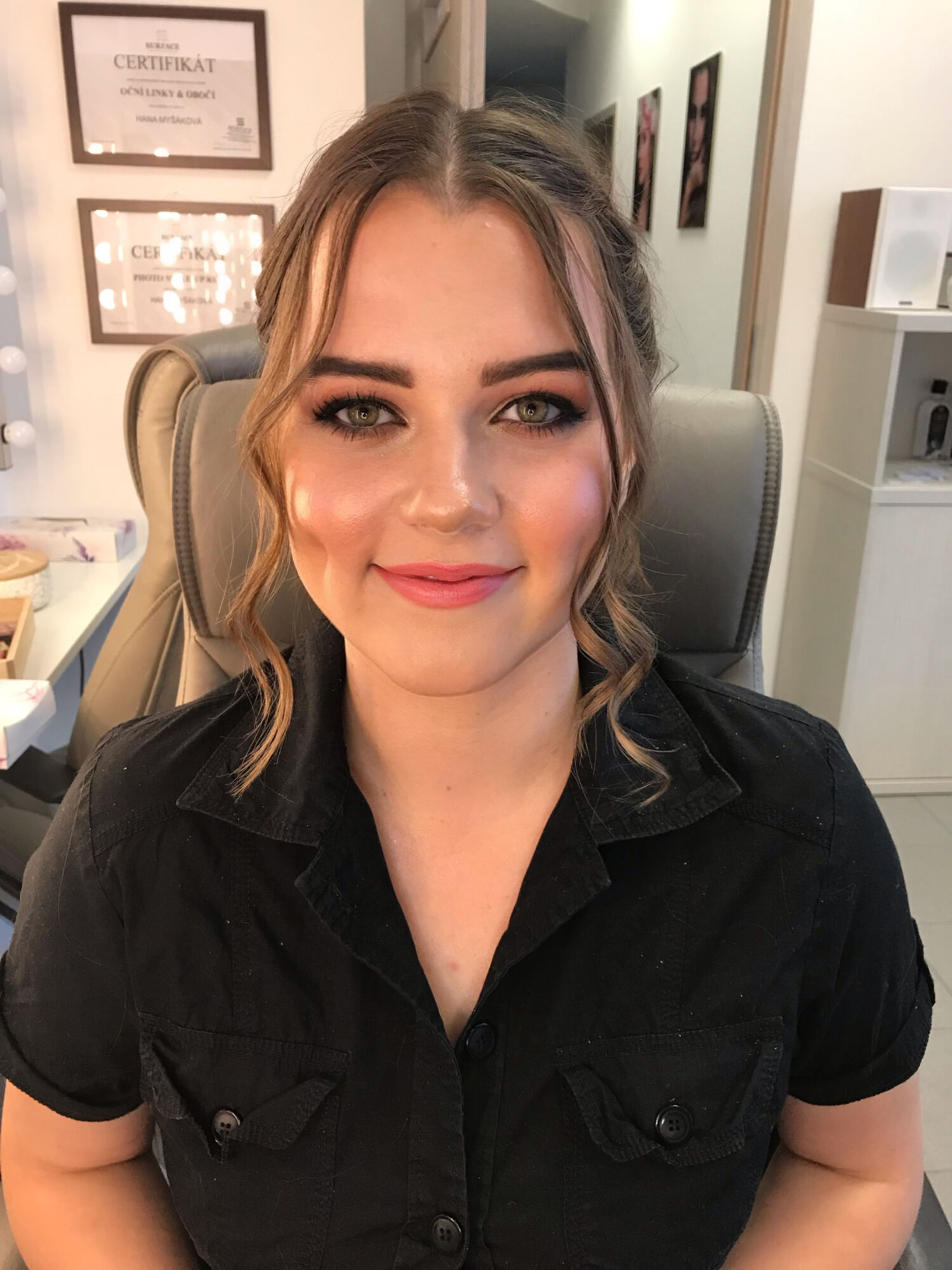 Červenec 2018 - ZKOUŠKA SVATEBNÍHO LÍČENÍ. Využila jsem zkoušku svatebního líčení nejprve u jiné vizážistky, ale nebyla jsem spokojená. A od mé kadeřnice jsem naštěstí získala kontakt na Hany, a jsem ráda, protože se zkouškou svatebného líčení jsem velmi spokojená. Hany umí opravdu poradit a ví, co se hodí k určitému typu obličeje. Cítím se přirozeně a zároveň hezky 🙂